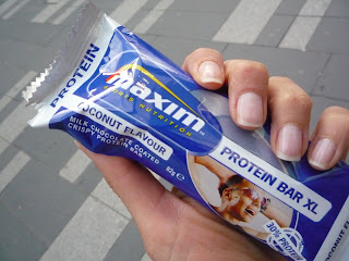 På väg ut från gymmet kände jag att energimätarna var nere på rött, så jag slog till med en ny proteinbar från Maxim som jag har gått och sneglat på ett tag…Proteinbar XL med coconut flavour…