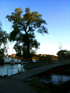 > Kan man annat än älska att bo granne med vattnet när Stockholm bjuder på kvällar som denna? Snälla – säg att de blåa skyarna stannar till imorgon…please… Foto: Privat. ”Min” park och badplats…kärlek.